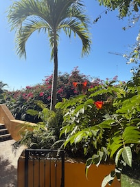 Our town of Bucerias is small enough to walk to everything but still offers a great variety of restaurants and shops. The house is located 2 blocks up from a sandy swimming beach in the neighborhood called "Zona Dorada" (Golden Zone named for the pyrite sparkling sand) This deep bay is a safe haven for sea life including dolphin pods and migrating humpback whales you may see in the winter months. The "sweet-water" is less salty than nearby Pacific beaches because the Bay of Banderas is fed by mountain spring rivers.