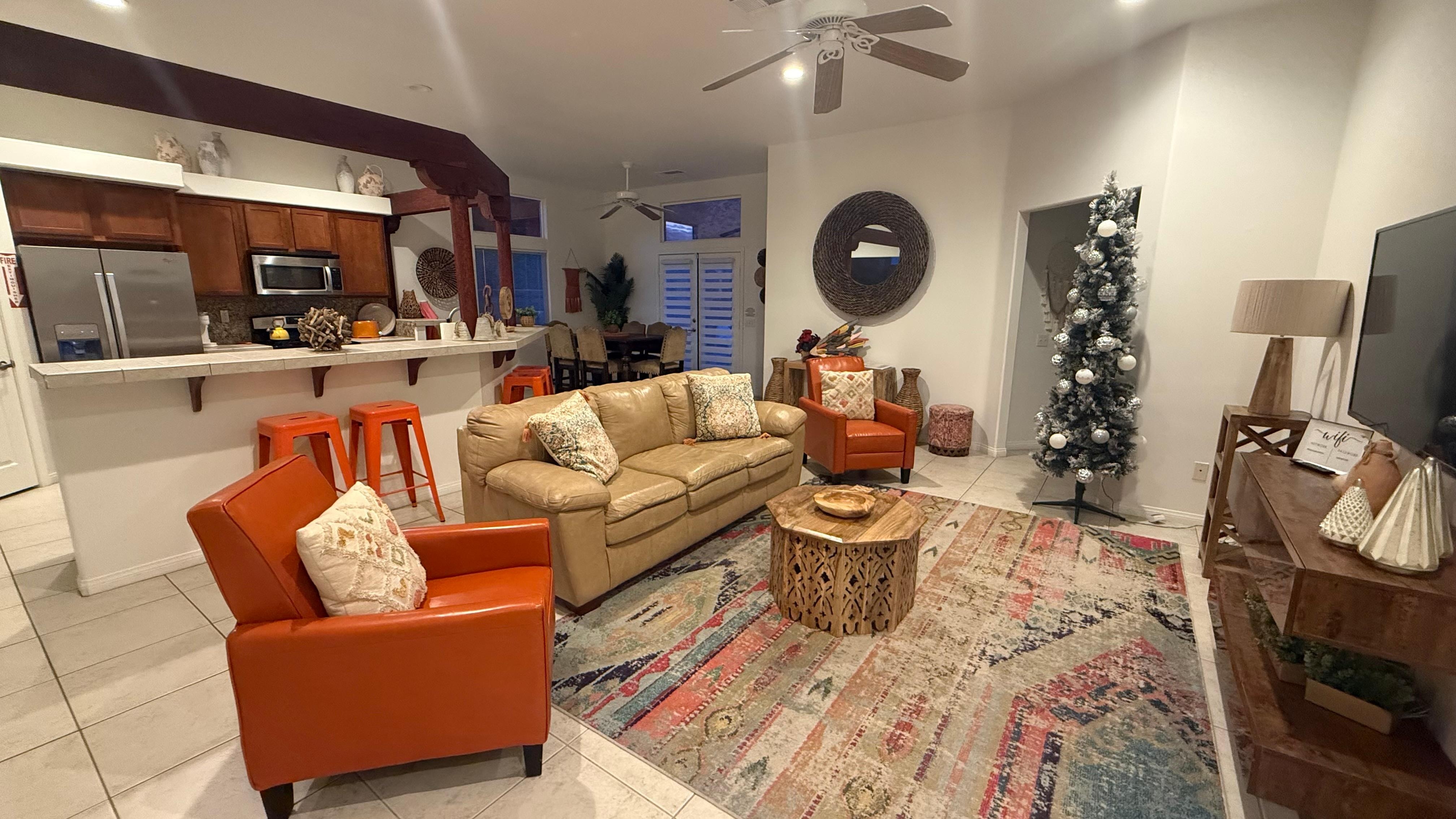 Enjoyed meals together in great kitchen - pool and hot tub time. Plenty of space for everyone - clean and welcoming. Easy access for Grandpa with mobility challenges also.