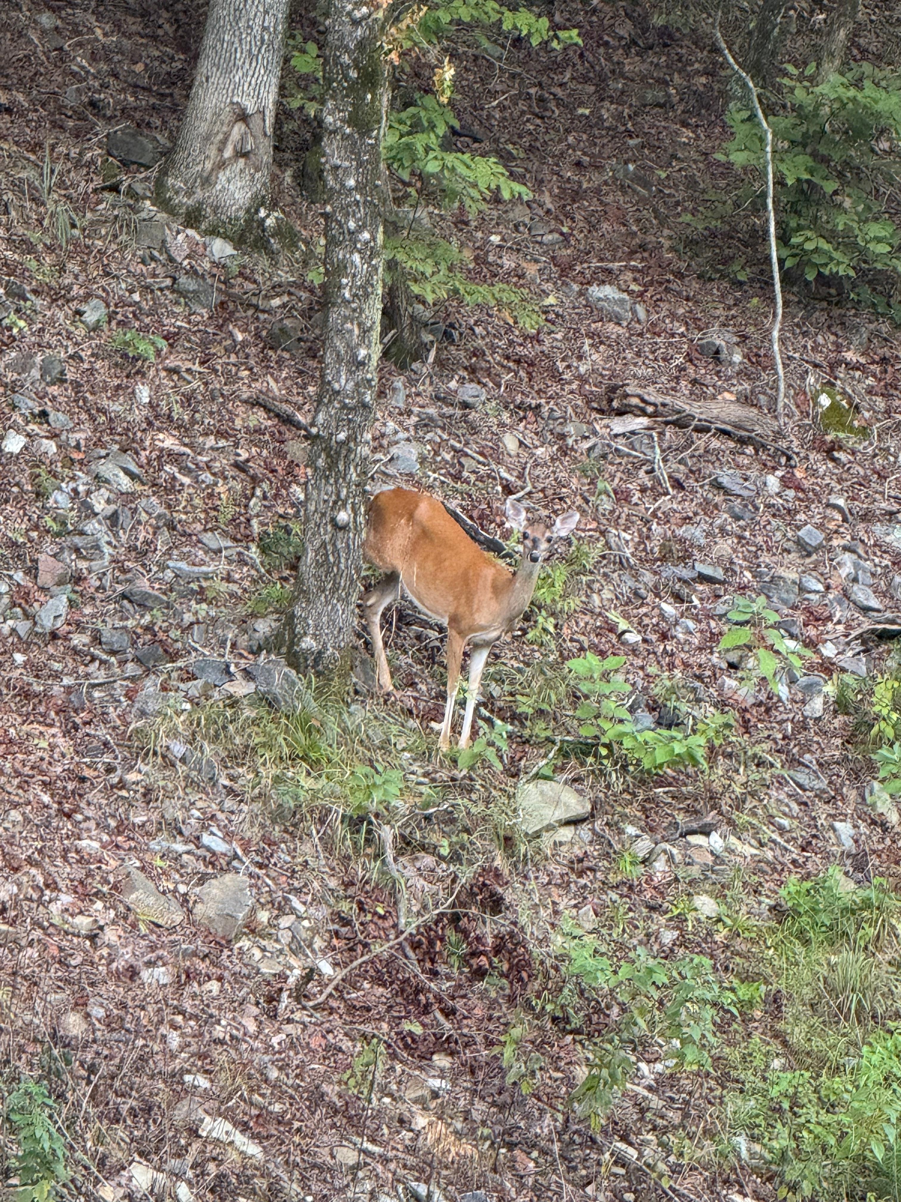 • Upstairs large covered deck w/comfortable lounge area, outdoor dining for six, treehouse views of the surrounding area