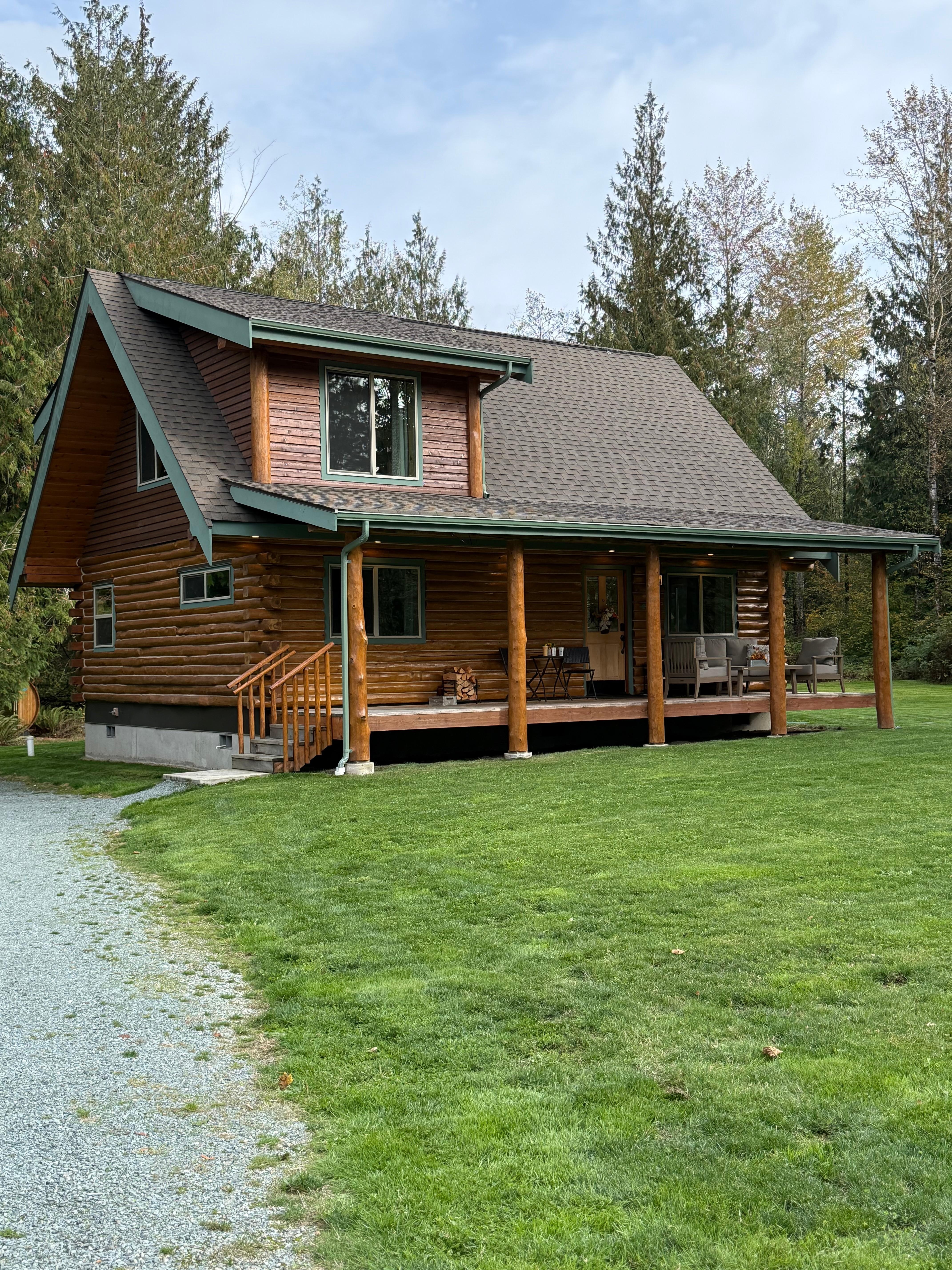 Welcome to our charming log cabin nestled in a serene forest setting on 5 private acres! We have built and personally maintain Peaceful Pines and look forward to sharing it with our guests until we eventually use it as our retirement home. Escape the hustle and bustle of daily life and immerse yourself in nature at our tranquil vacation retreat. This cozy cabin offers a perfect getaway for couples, families, or a small group of friends seeking a peaceful and rustic vacation. Located minutes from Mount Vernon and close to nearby destinations such as LaConner, Anacortes, Whidbey Island, the San Juan Islands (by ferry) and Bellingham. Centrally located between 3 National Parks. Excellent bird watching on the property and surrounding areas.