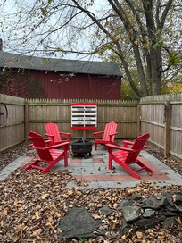 Guests also have exclusive access to a recently refurbished backyard patio with Adirondack chairs and a fire pit.
