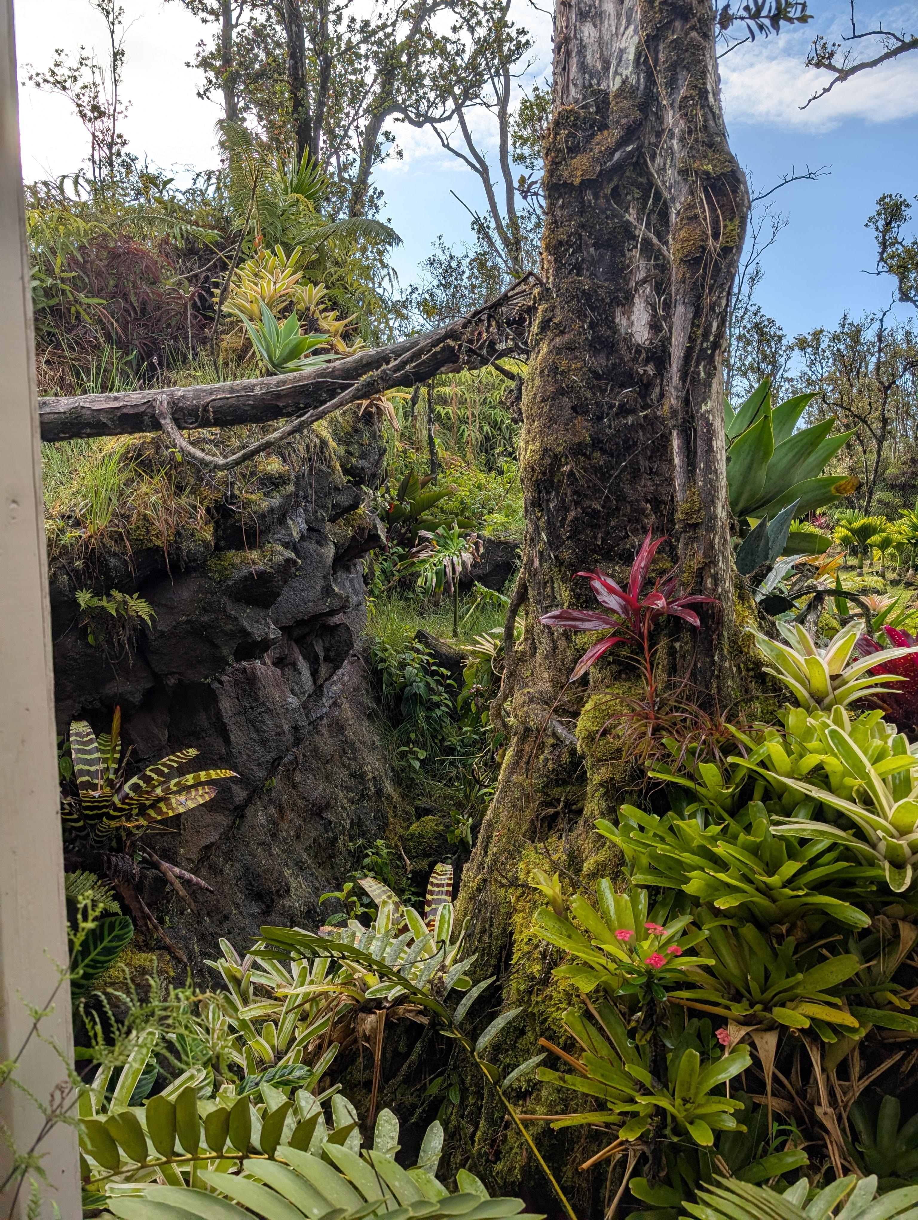 The stunning fissure, created by the earth-moving power of volcanic lava, is just one of the many impressive features of our property. The nurturing tropical rain and sun have created the legendary Ohia tree, which has been standing for hundreds of years. Our garden is also home to a variety of palm trees, layers of magical mosses, exotic tropical flowers, ferns, and succulents, all coming together to create a beautiful serene and inviting atmosphere for you.