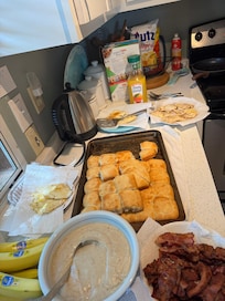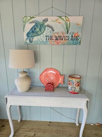 Newly remodeled beautiful kitchen with large quartz island and countertops. Everything you’ll need is supplied. Also just completed the master bathroom remodel . Our Pet friendly home offers these outdoor spaces, front porch dining table, screened porch sitting area with a dog door to a large fenced in yard. Horseshoe pits, basketball net, lawn furniture and fire pit. The beach is so beautiful especially at low tide and sunset .. you’ll see why it was named SUNSET BEACH ! We are excited to feel we have given this home a lot of love and we welcome you to come and enjoy , our little dream come true we have named