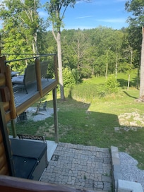 The cabin features a steel spiral staircase that accesses both the top level and the basement. Please use care when walking up and down the staircase and please keep an eye on young children. There is a baby gate in the closet of the main floor bedroom if you would like to use it.