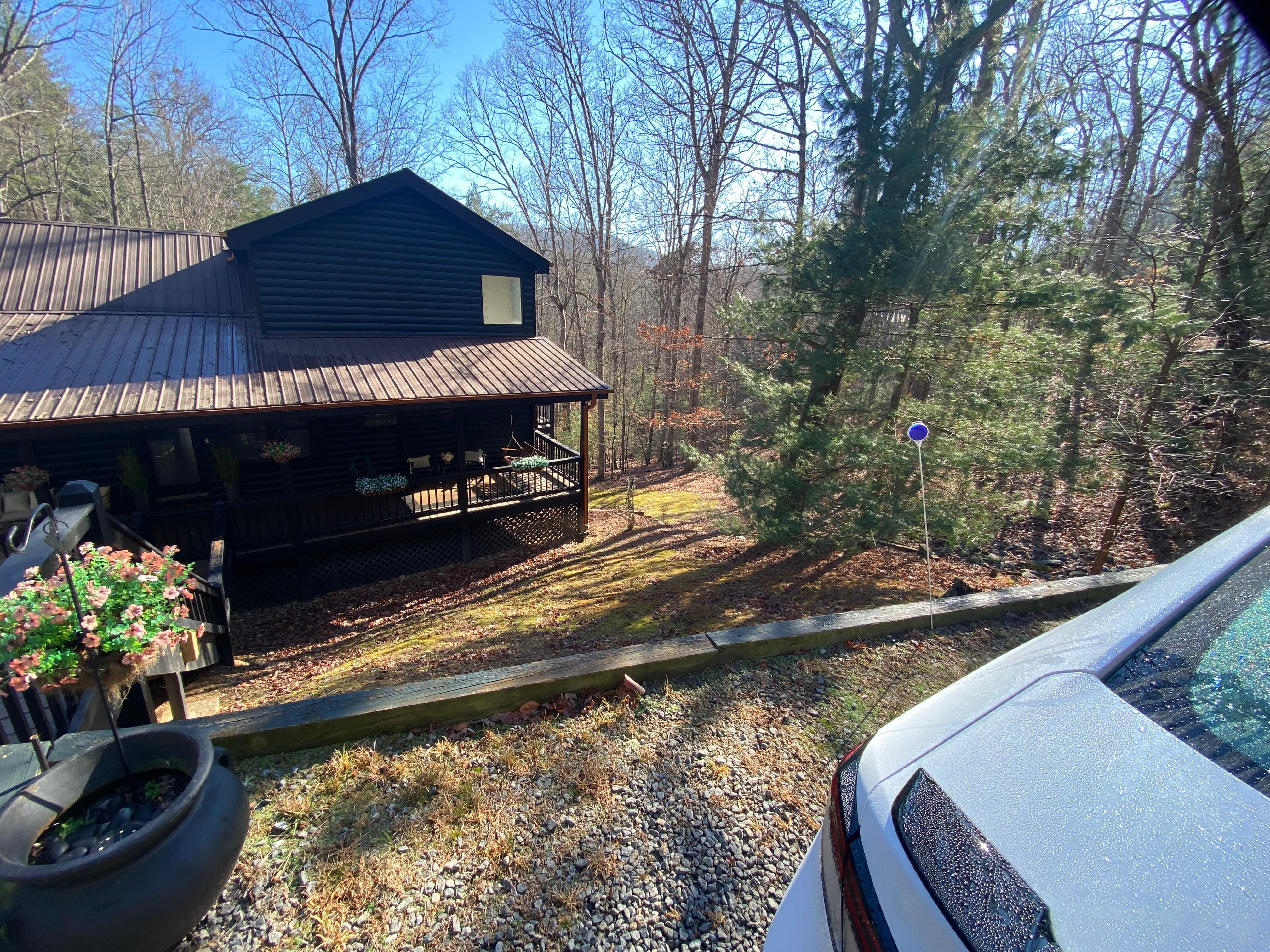 Wake up in the morning to birds chirping and a beautiful sunrise peaking over the mountain and through the trees while you enjoy a hot cup of coffee on one of the cabins' two large wrap-around decks. Morning sunrise and evening sunset are guest favorites for enjoying the local wildlife that frequents the property including deer, wild turkey, songbirds, and even the occasional brown bear strolling through for a drink from our creek.