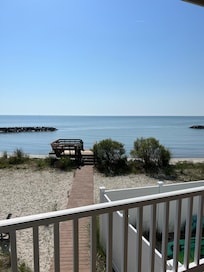- Expansive beachfront deck overlooking the Chesapeake