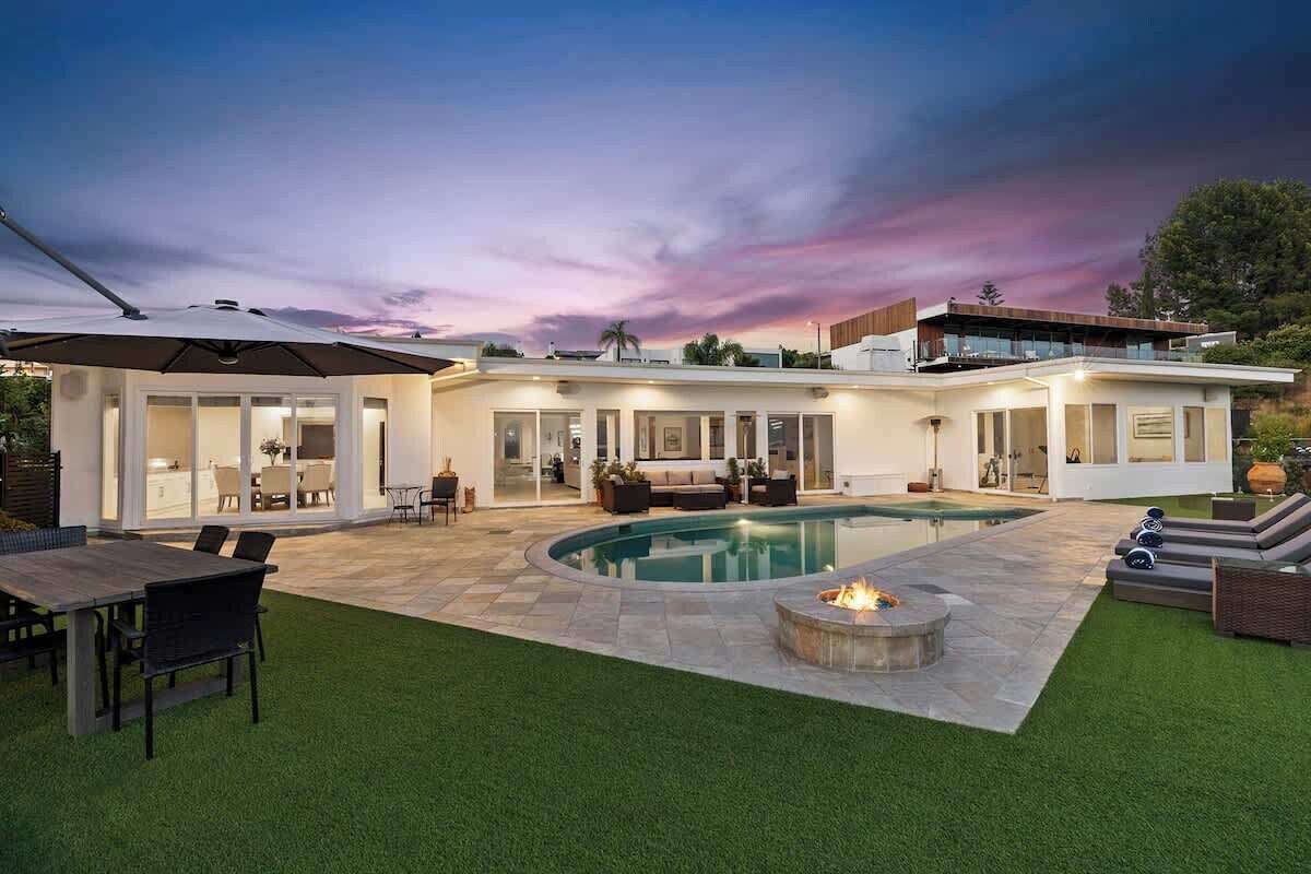 Located in one of the most desirable areas of the Hollywood Hills, this luxury fully remodeled villa captures an unimpeded panoramic view of the city while providing full privacy to our guests. This newly renovated property with a 6,300 sq.ft area reveals a sprawling interior that is luxuriously appointed with a large kitchen, 4 en-suite bedrooms with luxury bedding, primary bedroom with Spa bathroom including sauna, steam Room and jacuzzi bath.
