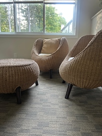 This large home perfect for groups is uniquely designed with a built-in retreat center! Experience the sauna, hot tub, lounge, Sonos sound system, waterfall rock shower for spa experiences, four full bathrooms, two indoor fireplaces, double oven, dining table with seating for 12, ample parking, built-in bar, shuffle board, outdoor patio surrounded by trees and wildlife, grill and optional spa experience including robes, flip flops and extra towels. This property features security cameras on the exterior of the home.