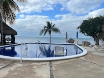 Beachfront palapa cottage with heated pool , sunsets and tropical gardens