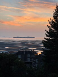 Welcome to our oceanfront Oasis. If you are looking for a serene place to relax, enjoy and unwind, you have found it. We are the top right unit, with spectacular views from almost every corner. Located right next to Rathtrevor Park, and a 1 - 2 min walk to the beach