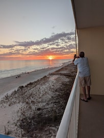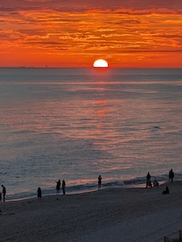 There's access to the gulf-front balcony from the living room and the master bedroom. The views from the kitchen are spectacular as well. When you're standing at the sink, it looks like you're actually directly ON the gulf…all you see if beautiful blue water! And, the living room has beautiful coastal furniture for your comfort. There's also complimentary Wi-Fi and a brand new smart TV in the living room for your enjoyment!