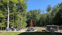 The options for outdoor leisure are endless - lounge on the porch, engage in spirited games of lawn darts or cornhole in the yard, or gather around the fire pit in comfortable Adirondack chairs, sharing stories and laughter under the star-studded sky. For those inclined to culinary delights, a gas grill is at your disposal to whip up a meal amidst this idyllic natural backdrop.