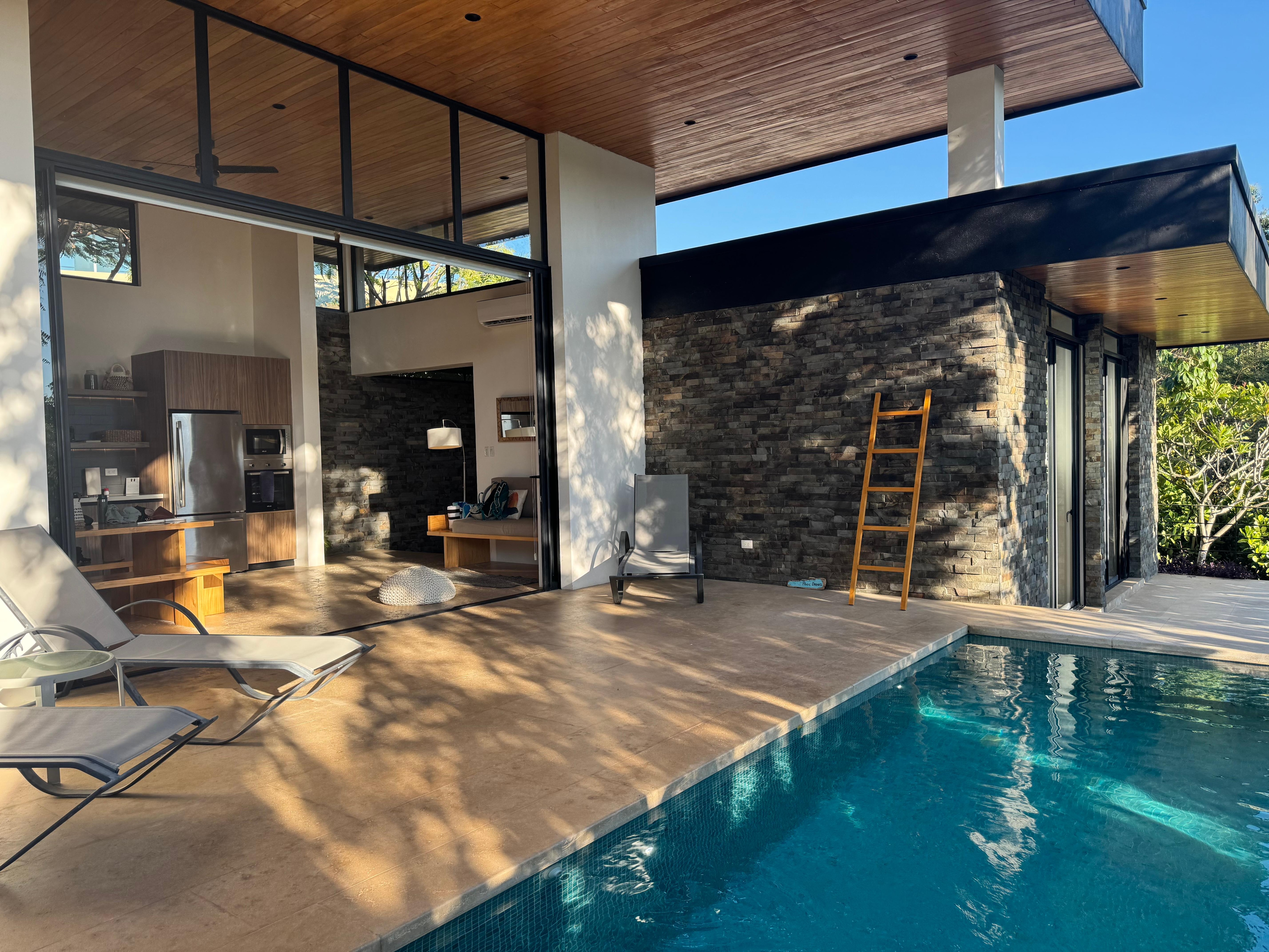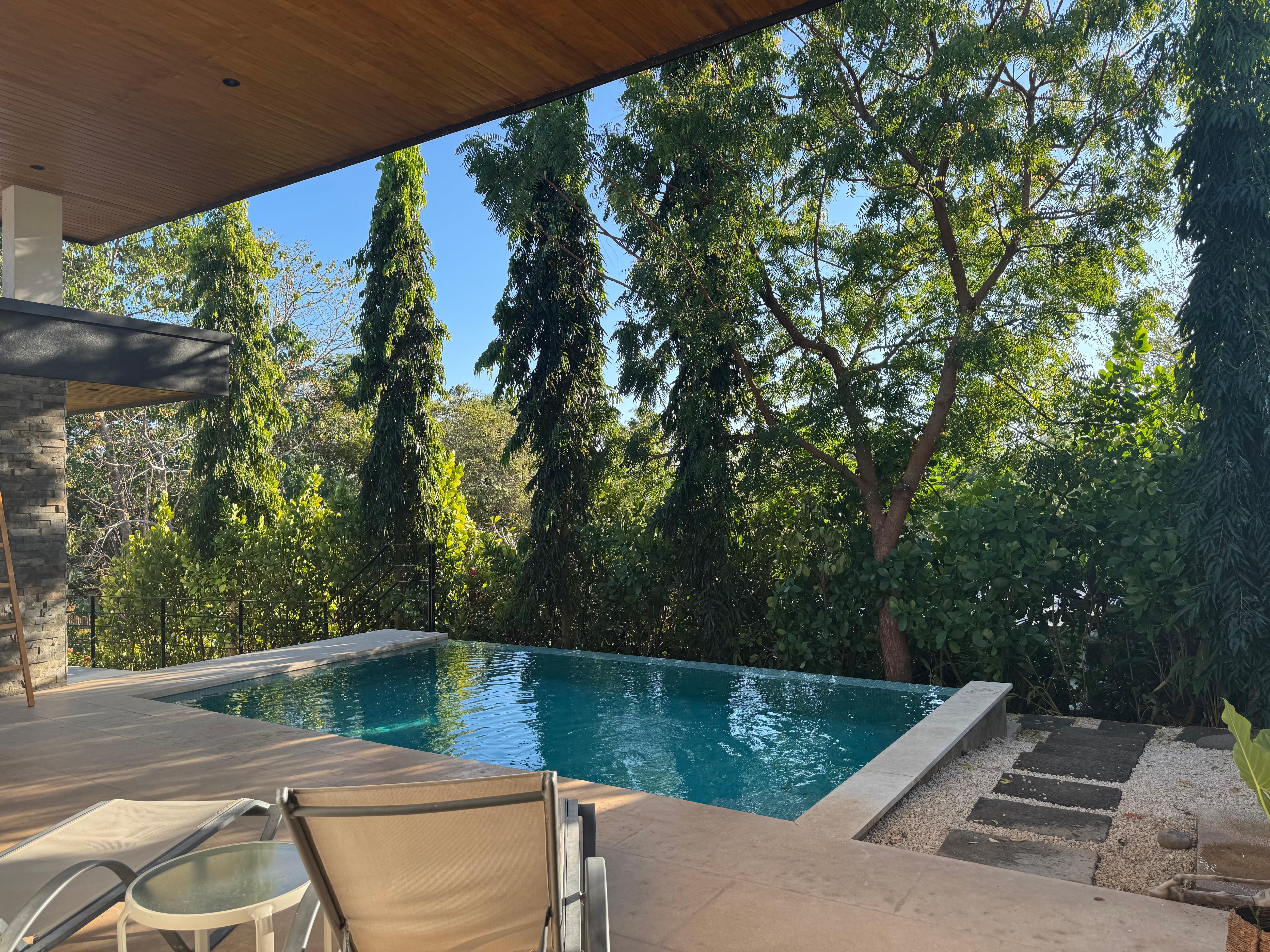 Dos Monitos #3 located in Playa Grande, a short drive from the beach. The property is fully equipped with the basic necessities to enjoy your vacation. It has secure parking within a small gated community of four villas, and security, all surrounded by jungle. There are beautiful green areas which our maintenance team looks after constantly. There are beautiful green areas which our maintenance team looks after constantly. This villa is in a huge property with 2 other small villas and and a main house. The villas are designed to keep privacy. Each of them are fully equipped and have access to their own private pool. Pet fee $50.