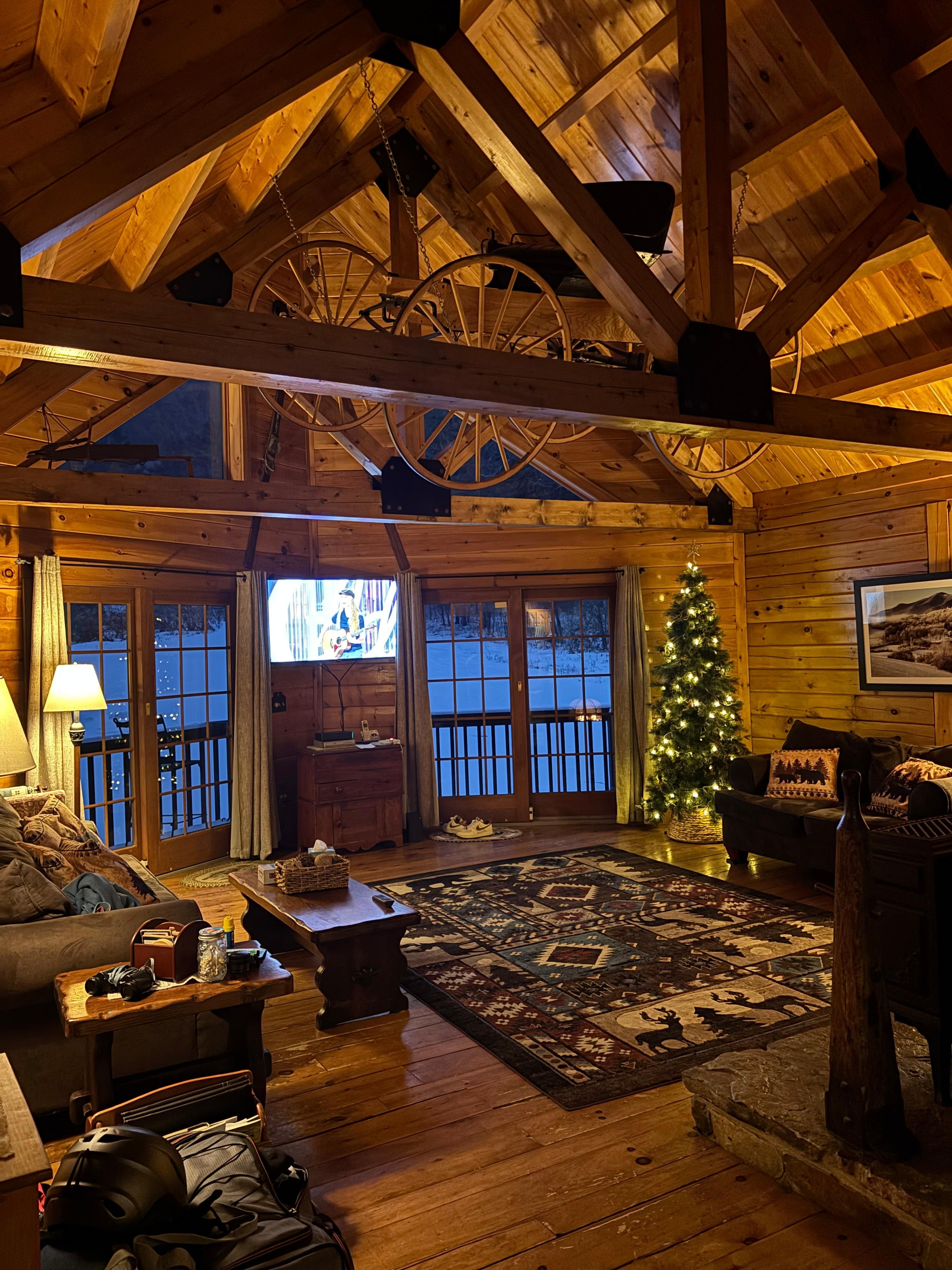 Enjoy the log cabin home with breathtaking views of Ascutney Mountain. Spacious 3000 sq ft home. Kitchen equipped with Microwave oven,dishwasher, refrigerator with ice maker,crockpot, outside gas grill. Main living room with direct TV and gas fireplace. Lower level recreation room with 52 inch TV/DVD/VCR combo. Game room with pool table, air hockey, dart board with bar area.
