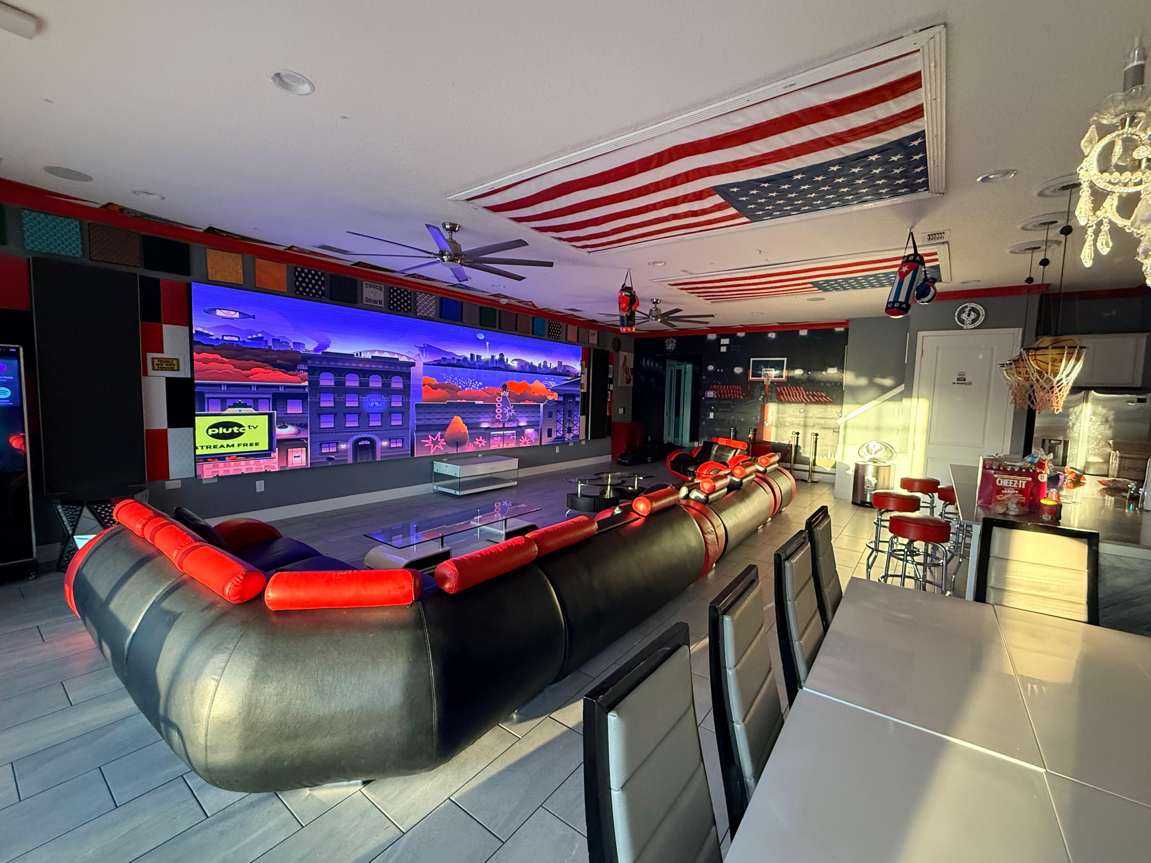 • 2 wall-to-wall living room TVs — ideal for sports watch parties, movie nights & corporate presentations
