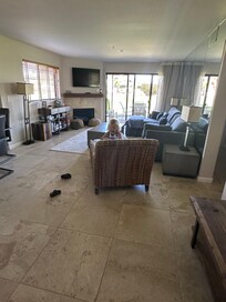 Lots of space for the whole family or a quiet getaway! You'll find the comforts of home, with a chef ready, well-stocked kitchen, gas-burning fireplace, TV in the living and bedrooms, ensuite bathrooms, and a beach home feeling. There are no daily housekeeping services. The property is cleaned before arrival and after departure. We provide hand soap, dish soap, dish towels, hand towels, bath towels, wash cloths, paper towels, and personal soap/shampoo. Two bedrooms with queen beds and ensuite baths. Large kitchen, plenty of seating at a generous dining table and kitchen bar, and a comfortable sofa bed (double) and seating in the living room. Patios are furnished with tables and chairs perfect for enjoying meals, morning coffee, or sunset cocktails, as well as lounge chairs to relax in and enjoy the stunning views! An electric grill is provided for outdoor cooking. There is a starter supply of paper towels, toilet paper, facial tissue, shampoo, conditioner, shower gel, makeup towel, hand soap in kitchen and both bathrooms, disinfecting wipes, dish soap, all-purpose cleaner, new kitchen sponge, kitchen towels, pot holders, garbage bags, iron and ironing board, stick vacuum, beach towels, and bath towels. In the kitchen, you will find a toaster, blender, coffee maker with a permanent coffee filter, Keurig espresso machine, and milk frother.