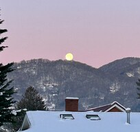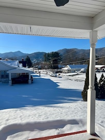 Great views of the Balsam Mtns from most rooms in the house along with the front porch and back deck. The house is on a quiet side street with minimal car traffic which makes it quiet and a great place to walk.