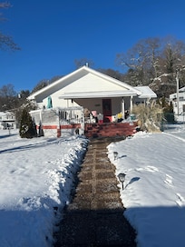 Charming bungalow with spacious back deck and front porch to take in Balsam Mountain views. Guests appreciate the convenience of being within a 5-minute stroll to historic Hazelwood Village, a .9 mile walk to lively downtown Waynesville, 15 minutes from the scenic Blue Ridge Parkway and a 35-minute (30 mile) drive to downtown Asheville. We are located on a quiet side street with a spacious fenced in yard for those staying with children or pets. Guests enjoy relaxing on the front porch rockers and taking in a beautiful mountain sunsets or dining on the generous back deck. After a day of hiking, sightseeing, or antiquing enjoy dinner at one of the many Waynesville restaurants, from upscale gourmet to casual and relaxed. The Balsam Black Bear offers a primary suite w/ensuite double vanity bath and ample closet space. The secondary bedroom/office consists of an ensuite bath and queen size pullout. A double pullout is also available in the living area. There is a large well stocked kitchen complete with Keurig coffee maker, air-fryer, microwave, and gas range. This 1920's charmer is a sun filled space with beautiful heart of pine floors, Roku Smart TV with Amazon Prime, Netflix and Hulu. All amenities are provided. Two night minimum stay. We look forward to hosting you.