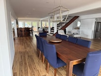 Enjoy lots of open space with water views from every room in the house along with lots of porches and decks. Chef's kitchen, lots of counter space, and 10 ft. dining table. Lots of windows and plenty of seating. Upstairs there is a coffee kitchen, large living area, large covered deck, 5 bedrooms and 2 sleeping areas with futons. There is a hall bathroom (with a tub) and 4 of the 5 bedrooms have their own private bathroom. Fish, swim, enjoy the sounds and views of the water on the multiple decks or relax in the chaises or the Adirondak chairs by the fire pit in the side yard. Recharge your batteries with the beauty of Lake Jordan, relax with friends or enjoy a house big enough to have a family get together.