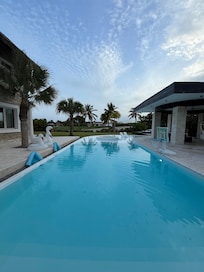 ➜ Pool Deck - spans an impressive 2,000 sq. ft. of tropical, coralina covered, outdoor space with plenty of privacy while also offering a birds eye view of the golf course and ocean near by, as well as an intoxicating tropical breeze throughout the year