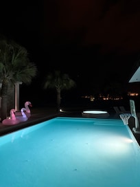 ➜ Gazebo - immerse yourself in a chic ambiance with a fully modernized gazebo featuring hammock swings and a new 70" Smart TV(w 3000+ channels), creating the perfect poolside entertainment spot for movie nights by the pool, or to watch The Masters from the pool deck. On the reverse side, is a grotto-inspired full bathroom, with outdoor shower, heated and lighted mirror, luxury faucet and shower fixture, natural rock and stone surroundings, and the same fantastic water pressure as the en-suite bathrooms(we know it matters)