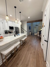 Enjoy a comfortable and relaxing stay in this brand new modern design townhome in the center of Lafayette. Three ultra comfortable bedrooms (two king size beds and one queen), a relaxing living space and a fully loaded kitchen ready for the daring inner chef to prepare some world famous Cajun cuisine. Two workspace locations connected to strong and reliable fiber optic wifi service. Private garage with two additional private parking spaces. Perfect location minutes from everything you need.