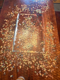 -DINING: Table has two benches that can seat six easily or can seat eight with four on each bench.