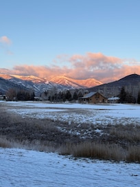 The view from our living room and master bedroom, which is also the view from the hot tub is so beautiful! We never tire of it summer or winter.