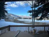 -PRIVATE HOT TUB with mountain/golf course views, only a few steps from the back door. No long walk in the cold to the hot tub. There is a wraught iron table with 4 chairs on the back porch and a table and two chairs on the front porch.