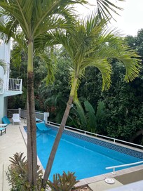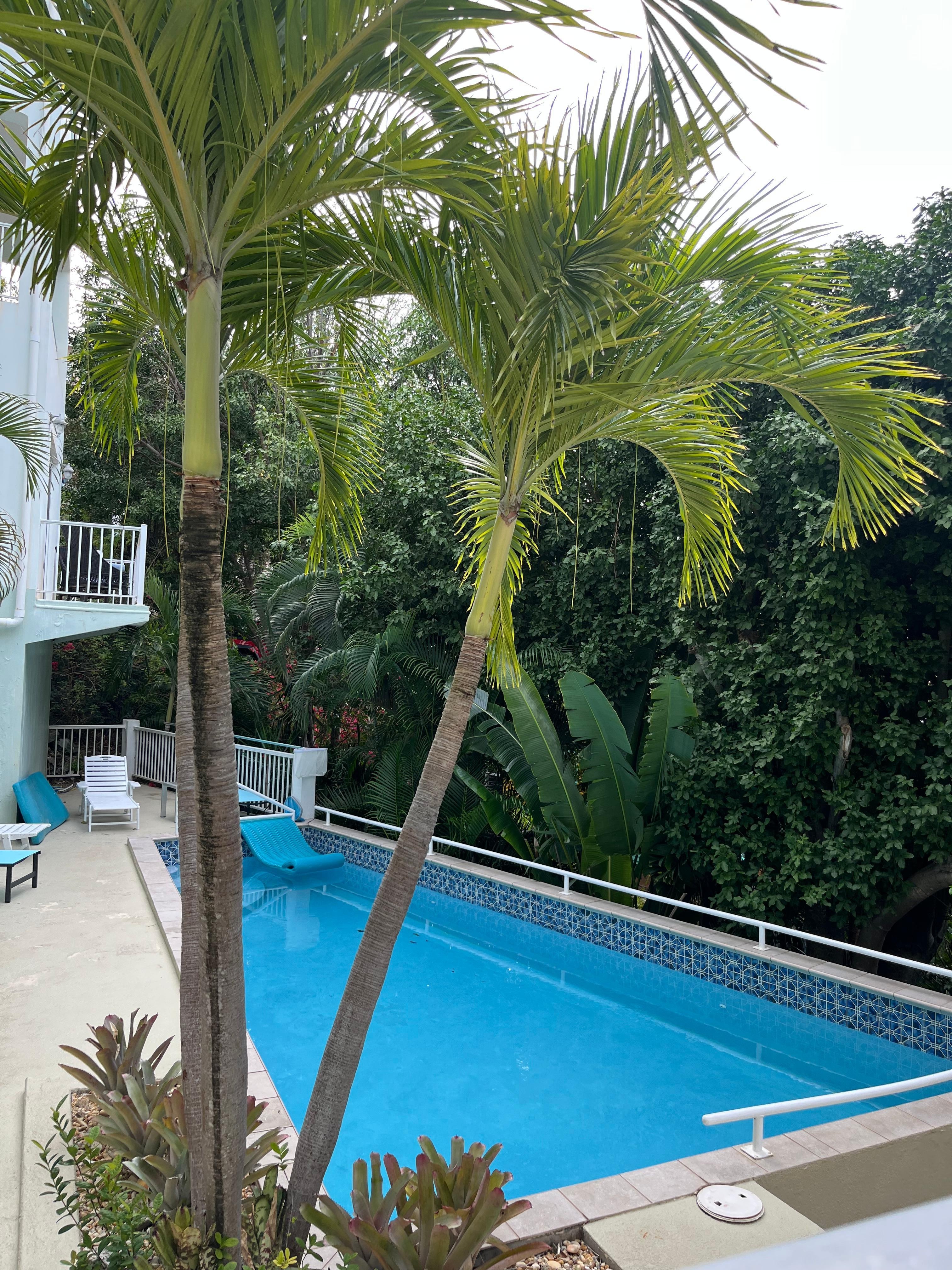 Silver Palm at Palm Terrace is a magnificent, luxury condo in the heart of Cruz Bay. Silver Palm has great views of the ocean from the balcony and master bedroom and is beautifully furnished with two master suites, both with king beds and two additional bedrooms with queen beds. Silver Palm is equipped with a full kitchen and dining table that has seating for 6. Silver Palm also features all beach necessities including chairs/coolers/snorkel gear/coolers and a common pool and grilling area in the 6-condo complex.