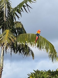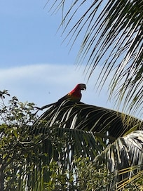 Throughout the day, you will see large flocks of parakeets, yellow kiskadees, 6 scarlet macaws, and dozens of hummingbirds (colibris) dartingin and out of the pink-flowered trees below. In front of you the view is multi-layered: there is a dense canopy of trees, then beyond that, sandy Samara Beach, and beyond that, the island called Isla Chora - the view that Samara is famous for.