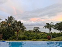 Built in 2008, the 7 Samara Reefs houses are situated in a row along a 7-acre ridge 150 feet above sea level. Each house has picture-perfect ocean views that overlook the horseshoe-shaped bay of Playa Samara and the tiny island called Isla Chora. Casa Colibri has an ocean views in front and jungle to the sides and the back - there are great breezes and NO mosquitos. The view from the front door the view is dense green jungle and the Werner-Sauter protected ecological reserve. Because of its elevated position on the ridge, Casa Colibri receives both off-shore and on-shore breezes which help to keep the house feeling fresh and cool. Sitting at the dining room table, it is sometimes a little WINDY!! Casa Colibri's location allows not only stunning ocean views, but also picturesque sunrises, AND incredibly beautiful sunsets.