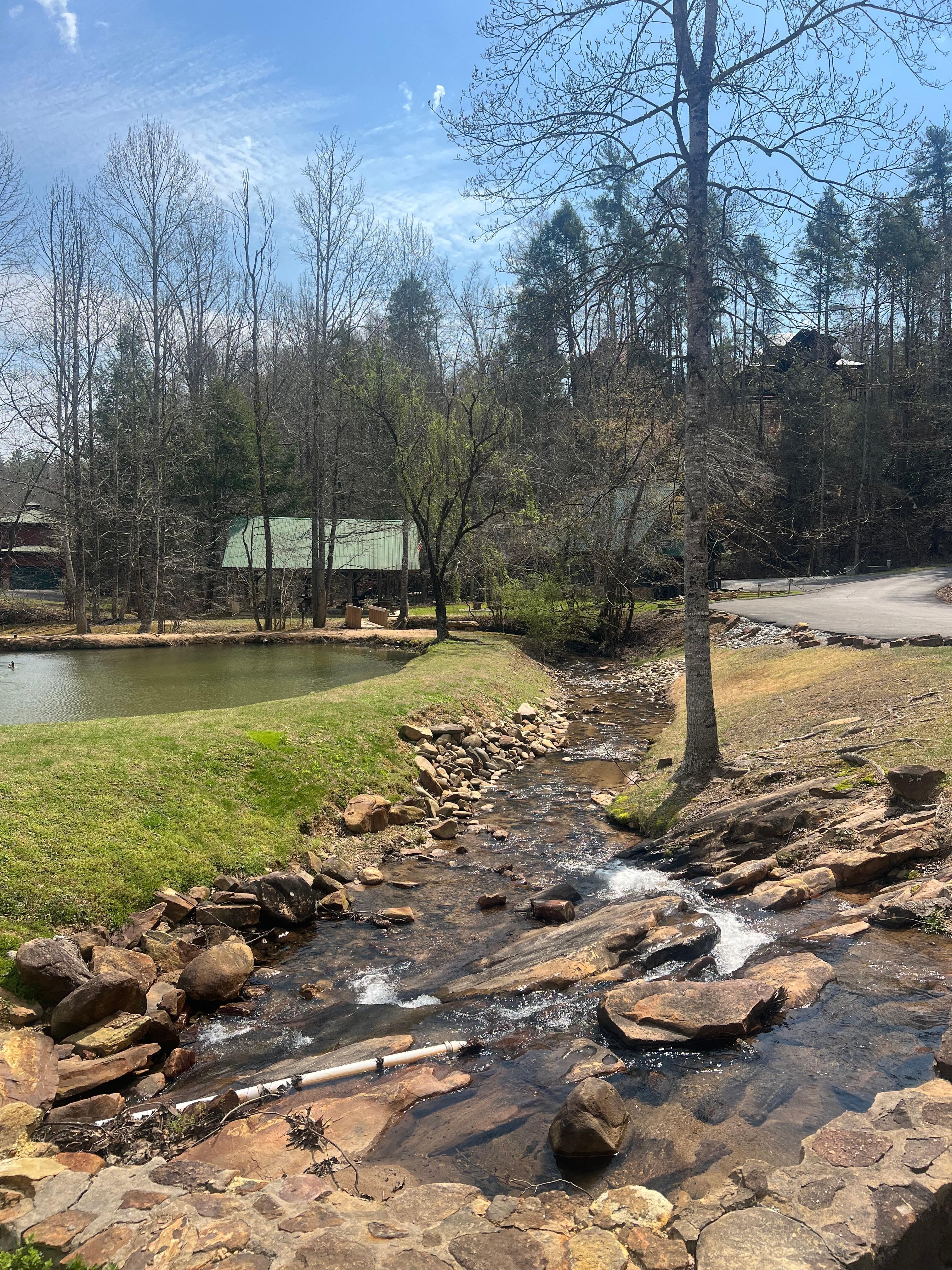 Retreat to this peaceful, creek-side cabin! Enjoy the private indoor pool , or sit out in the hot tub and enjoy nature. Sit out by the fire at night, roast marshmallows and enjoy the peaceful nature of the mountains. Featuring 2 king bedroom with ensuites and full-sized kitchen. Cedar Falls Resort Amenities include outdoor pool, catch and release fishing pond, sports court and nature trail.