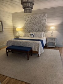 JonBie Sea Witch is where your Daufuskie dreams come true. 2 Bedroom/2 Bath stand alone Melrose Cottage. Not a duplex. Primary suite has 1 king bed and en suite wet room that includes soaking tub. Second bedroom has twin bunkbed and full bath/full laundry across the hall. Common areas includes dining for 6, wine bar, coffee station with plumbed coffee pot (no need to add water) for that perfect brew, gas-see through fireplace for cozy dining and living view. Smart TVs in Living Room and Primary Bedroom (log in to your favorite app). Outside space includes screened porch, firepit, golf cart parking. This cottage is located front row of the Melrose Cottage association and has views to ocean from front porch and wooded views to the rear. Relax to the sound and view of the Atlantic Ocean from bedroom, dining room, kitchen and living areas. A golf cart with charging station is included with your booking so you can enjoy travelling around the island. Beach chairs and beach towels are also stocked for your stay - pack light. Fully stocked kitchen: all clad cookware, service for 12 (utensils/plateware/etc.) drawer microwave, refrigerator (icemaker, water in door). Full size washer dryer (though you are on vacation and we don't want laundry to be your priority :))