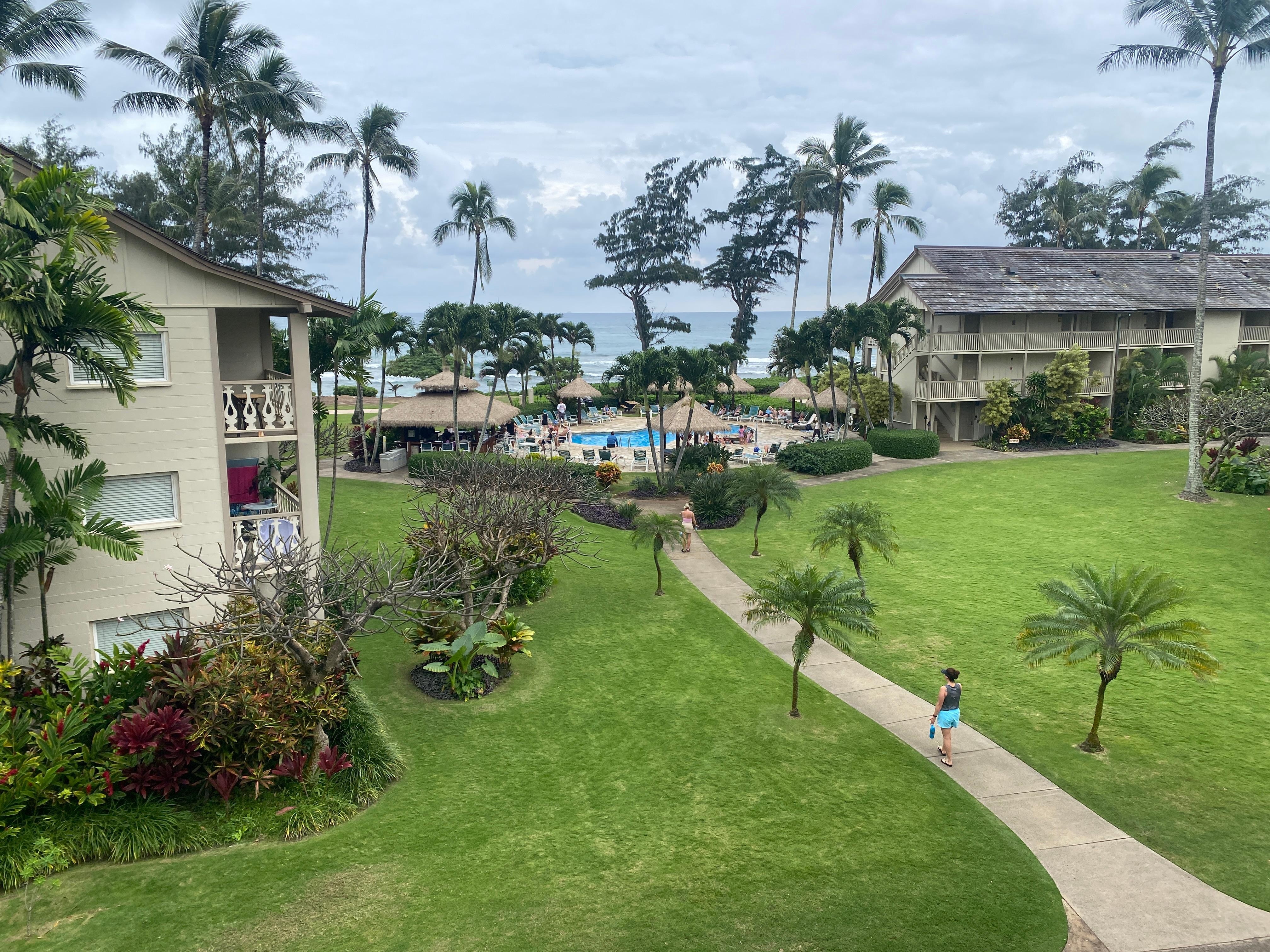 ✔️ Private lanai with breathtaking ocean, garden, and pool views