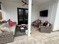 The 3.5 bathrooms are equipped with amenities like walk in shower with separate tub in Master, shower/tub combo in additional bathrooms and hair dryers in all bathrooms. You will find plenty of storage space throughout. Additionally, you'll find WiFi, central heat/AC, an iron, ironing board and full size washer/dryer in this home. The kitchen is fully equipped with plenty of dishes, glassware, cookware, utensils, air fryer, crock pot, toaster, blender, 2 Kureig coffee pots, mixing bowls, mixer, steak utensils, bakeware, oven, convection oven/microwave, 36" cooktop, dishwasher and large farmers sink. You will have additional seating to gather with friends and family around the large island bar along with dining table. There is additional living space on 2nd floor to include wet bar with sink and coffee station, beverage cooler, and ice maker for your favorite beverage to enjoy! You will enjoy additional living space and game room on 3rd floor including Foosball table and dart board. Our home includes an outside shower and beautiful pool seating to enjoy a nice soak along with additional patio seating, barbecue grill, corn hole, ring toss, Jenga and outside patio picnic table along with outside lighting, bistro lights and your choice of pool lighting for entertaining! Don't worry about packing a towel for the pool, we have you covered! Enjoy beautiful sunsets on the wrap around upper front deck or your morning cup of coffee! You will be steps away from beach access, Rick Seltzer park, good eats and beach shops. Stay tuned in to local events, live web cams, etc. by visiting the PCB website: www.visitpanamacitybeach.com. You're sure to make fantastic memories with a stay at our place, "Knot Stressin!"
