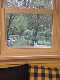 Many of our guests love the deck where they can enjoy their morning coffee or a cocktail while grilling at dinner time. Deck is designed with gate to allow furry guests free access with their humans. We have an extensive summer garden and share the bounty with our guests...they are welcome to pick their own fruits and veggies...can't get fresher than that.