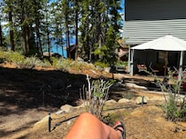 Elk Point is a gated community of about 90 homes with our own private community beach , swimming area with a raft in the summertime, and beautiful beach deck and barbeque area. Our house is directly across the street from the lake with stunning lake views from two lake facing decks and a quiet backyard deck and play area. In the winter, Heavenly Valley is 10 minutes away, with Kirkwood, Alpine, Squaw and Mt. Rose nearby to ski. Sledding for kids of all ages is in the backyard and on Hill Street, and cross country skiing is out your front door.