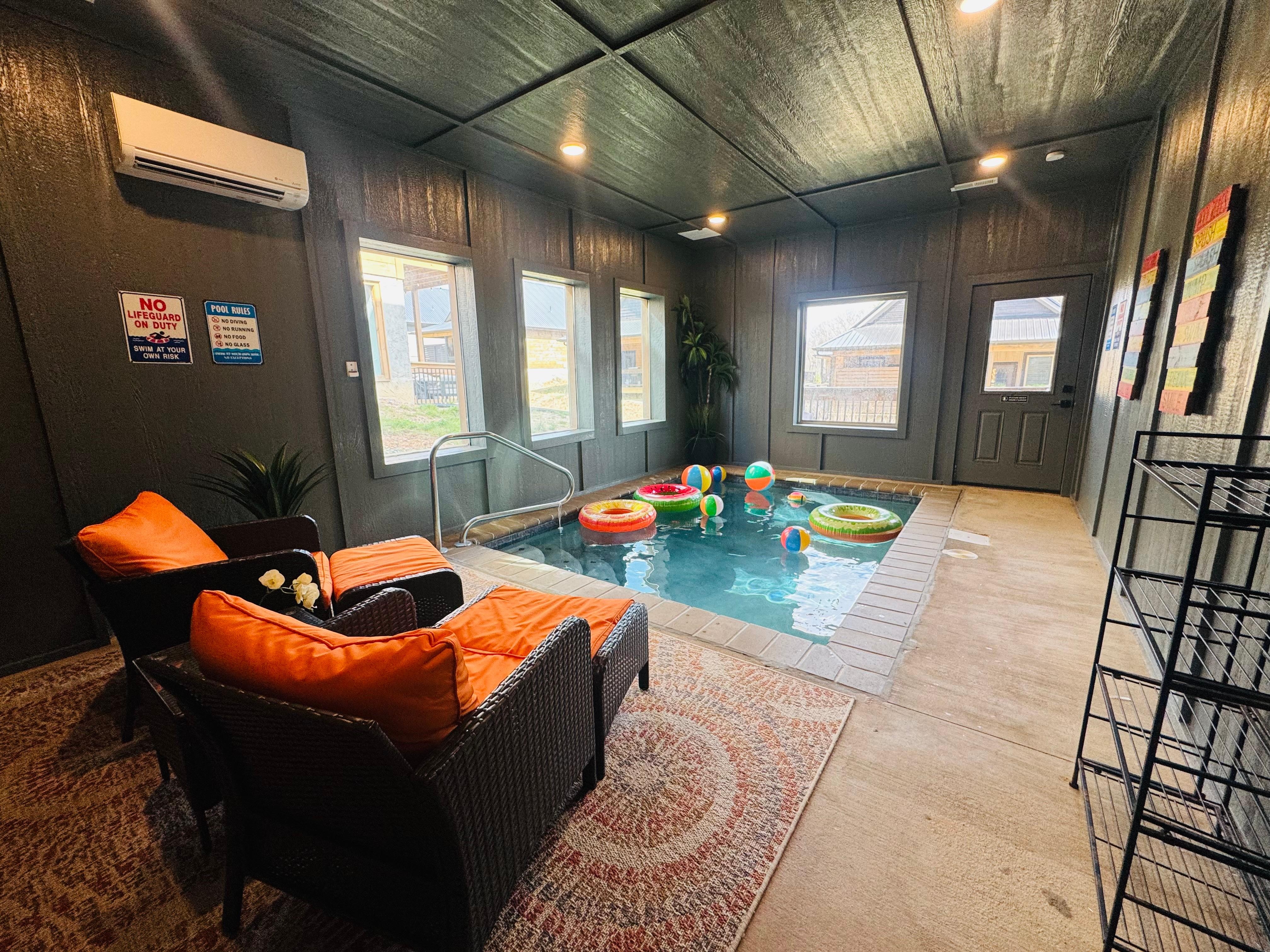 The centerpiece of our 2,300 sq ft cabin is its indoor heated pool, providing year-round delight for guests. Whether you desire a refreshing swim, a tranquil soak, or simply wish to unwind poolside, our indoor oasis caters to all. Adjacent to the pool lies the inviting hot tub, offering the perfect respite after a day of exploring the Smoky Mountains or enjoying the thrills of Dollywood.