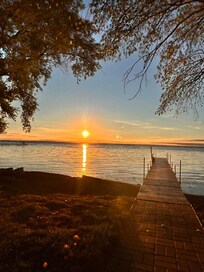 This fully equipped and furnished one story, 2 bedroom bungalow (with a twin hide-a-bed in the living room area) will appeal to your ideas of a relaxing vacation! If you desire internet, this home is so equipped and has Wi-Fi! Just bring your clothing and personal care items! The East facing deck off the living room lets you watch the gorgeous sun AND moon rises over beautiful, relaxing Lake Winnebago! A 40' dock for you to fish from, or step into the water from it's ladder for swimming! We STRONGLY RECOMMEND WATER SHOES because of the zebra mussel shells. We provide both a pedal boat and kayak for your waterfront use at no extra charge! Complete with flat screen TV's in the living room and both bedrooms, your entertainment needs will be met. There is also a large side yard for activities such as croquet, badminton or volleyball, when you might be taking a break from your waterfront activities. The kitchen is fully equipped, stocked with anything needed for your culinary desires. There is an electric glass top range, both coffee pot and single serve pod coffee makers, double door refrigerator/freezer with water and ice dispensers, built-in dishwasher and microwave too! In the event you need to wash clothes, there is a 1st floor washer and dryer for your use. So............make your reservation for a relaxing stay at "Shorewood". It is directly west of and across the lake from our other rental called "Twilight", and just a few minutes from the city limits of Oshkosh, WI. Close to boat ramps, parks, grocery stores and restaurants! Sorry, Strictly, no pets allowed in consideration of future guests who may have allergies. Strictly, no parties or events allowed!