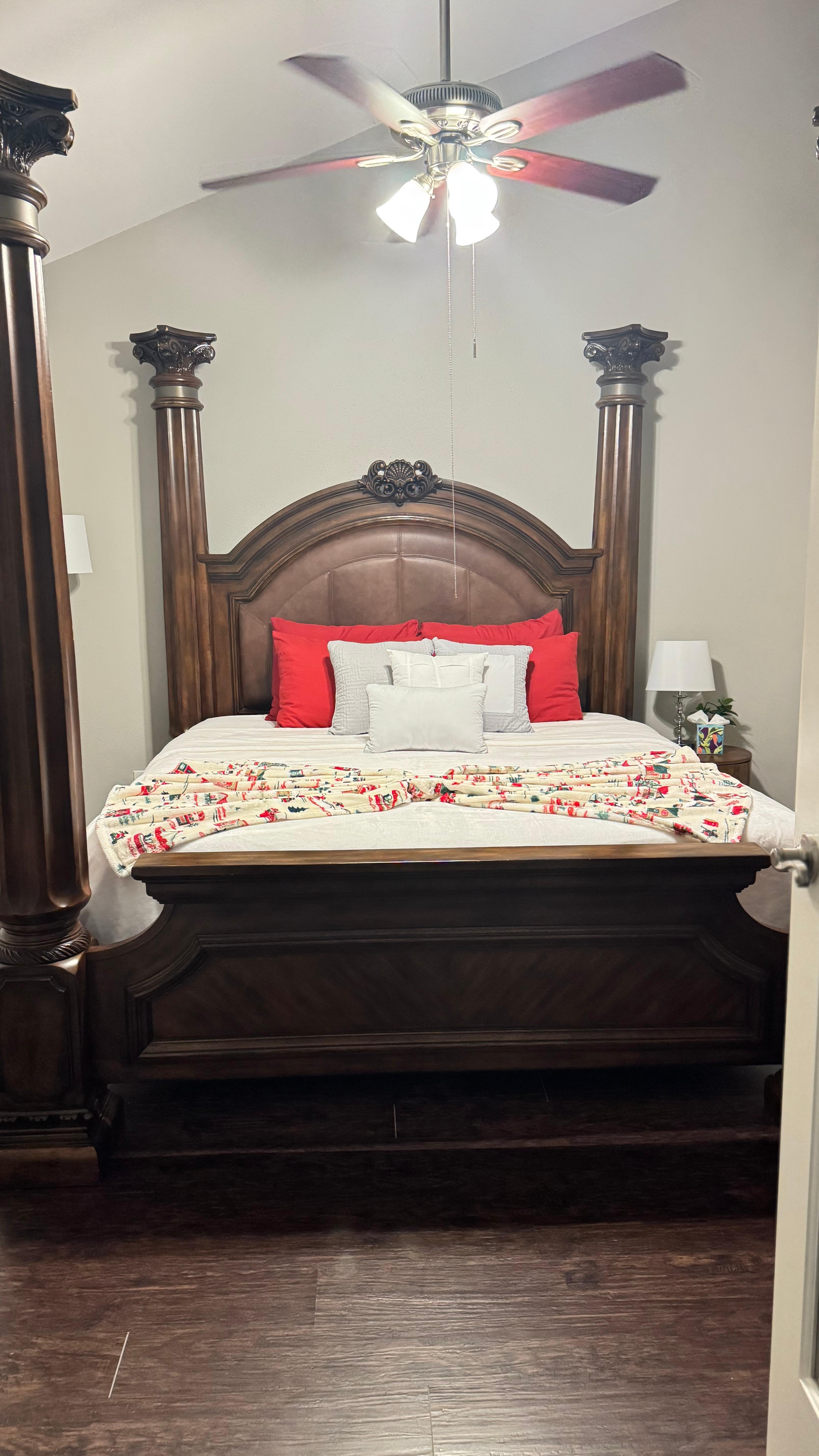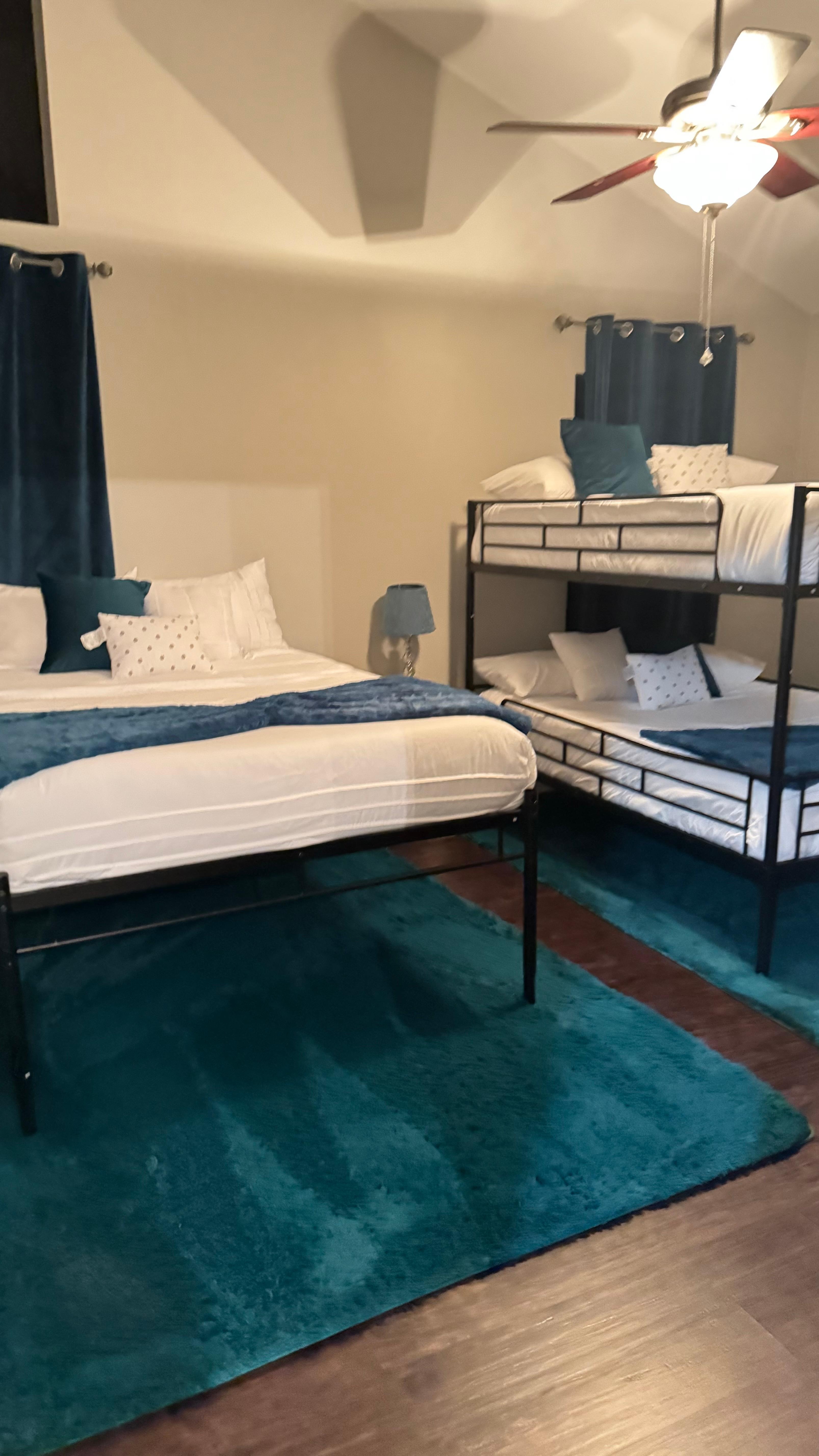 - A California king bed and 3 full-size beds