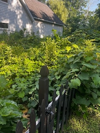 The property itself boasts a large partially wooded yard with private overlook, fenced garden with seasonal raspberries, apples, rhubarb, cherries, and herbs. The animals love it and you will often see deer with their fawns and rabbits as you relax on the front porch or at the patio table. The robins can't resist making their nests in the safety of the porch columns and the garden also provides excellent birdwatching from the large window overlooking it.
