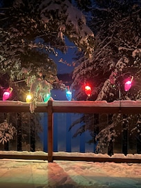 Great view out to the lake but when you sit on the deck, you are up in the trees. Feeders bring in all kinds of birds, year round. It is just a special place!