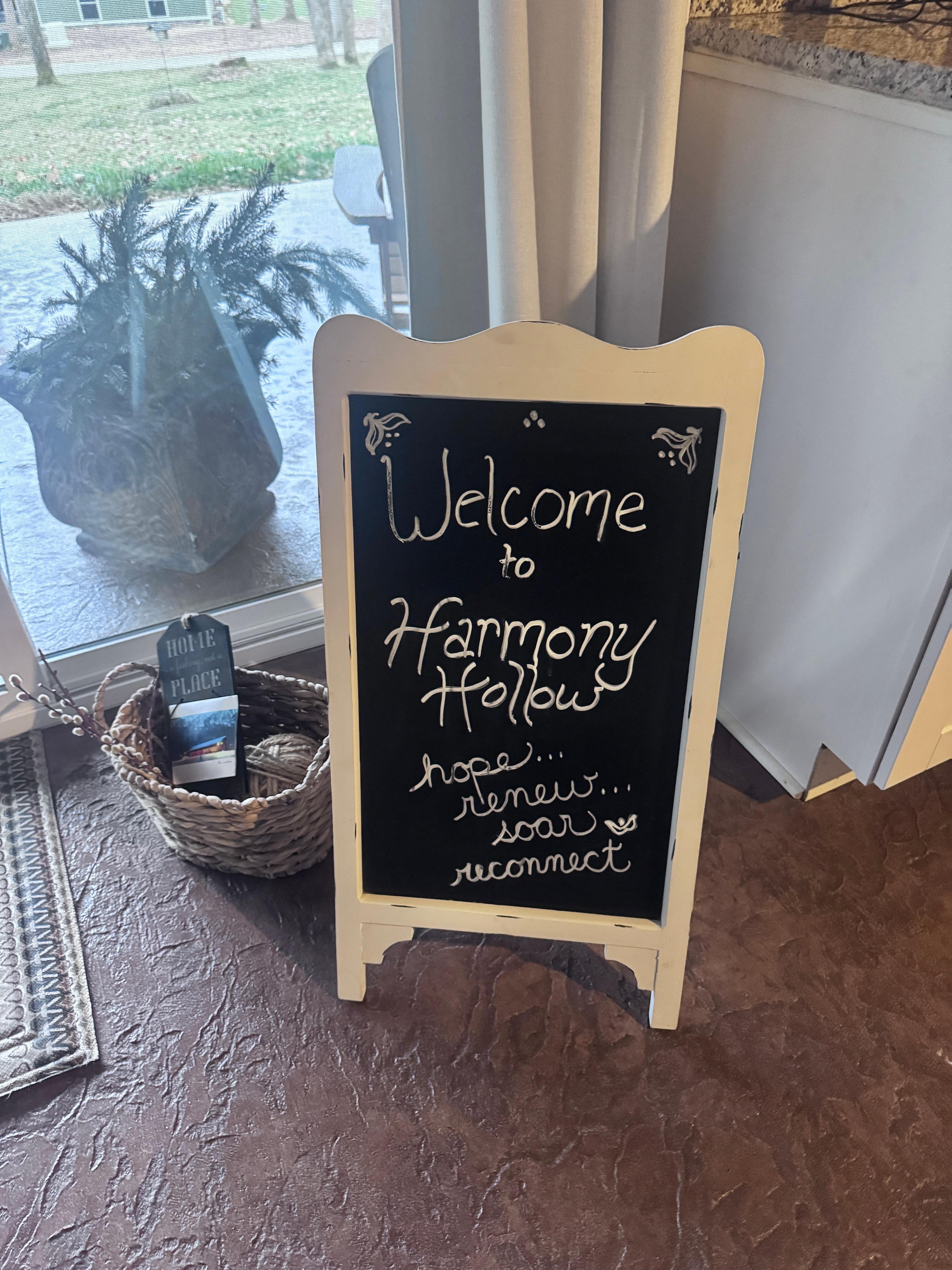 Harmony Hollows charming and cozy barndominium is picturesque both inside and out, nestled in the woods with the creek nearby. It offers a very well-maintained hot tub only a step away from the barn, a large stone ventless gas fireplace, an oversized and luxurious shower and double-vanities, fully supplied kitchen, charcoal grill, large covered porch and outdoor dining and seating areas, outdoor fire pit with provided wood, central heat/air conditioning, and free Wifi and cable TV.