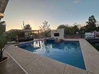 Spacious resort style backyard with Private pool/spa includes 3 lounge areas, 4 TV and 6 Bose bluetooth speakers for entertainment.