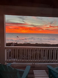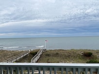 'Permanent Waves' is an oceanfront property that is adjacent to the Intracoastal Waterway. Notably, guests have water views from nearly every room in the house. On the ocean side, Dolphin pods are a frequent siting due to the close proximity to the inlet. On the street-side, enjoyable past times include boat watching on the Waterway while capturing a stunning sunset. Just minutes away the North Pier and Freeman Park are perfect spots for those who like to fish, crab and rake for clams. And, right out the door, guests can relax/swim in the heated, salt water pool or stroll down the private walkway and put their toes in the sand for much needed beach time. An outside hot and cold shower make going back and forth to the beach even more fun, clean and easy.