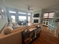 Permanent Waves has 5 bedrooms with 4 1/2 baths, water views from nearly every room that can accommodate 14 guests comfortably and in style with BRAND NEW, allergy friendly, luxury vinyl plank flooring in all of the bedrooms and adjacent hallways. The kitchen is well equipped for cooking and the table and 2 bars provide seating for up to 14 with additional seating for 4 on the oceanfront porch. Wireless internet is available throughout the unit. Each bedroom and the main living room enjoy Smart TV's with premium cable packages. A Blu-ray DVD player, DVD's, books, games and puzzles for all ages are at your fingertips.