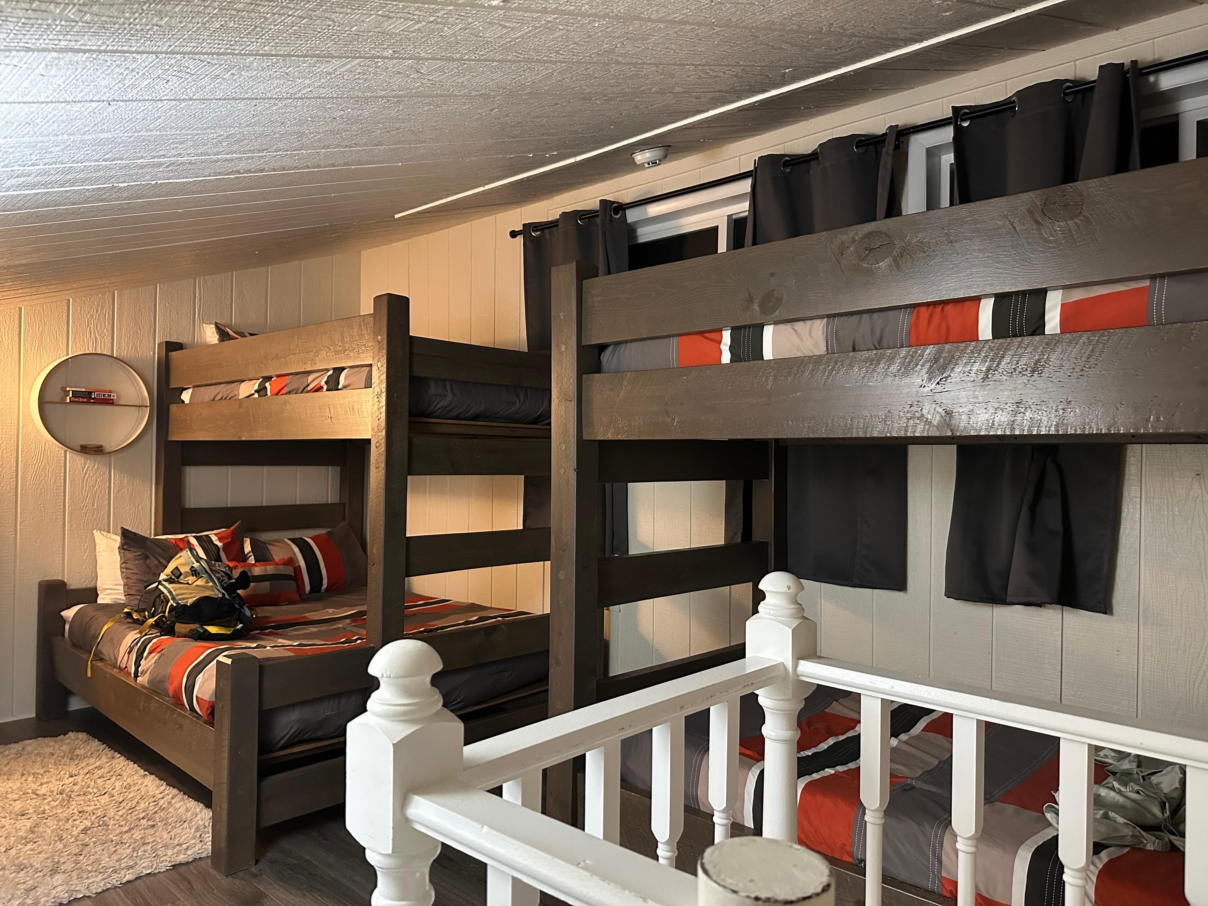 •Twin over Queen Bunk + Twin over Twin Bunk (Sleeps 5)