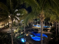 This is a bright corner unit (blackout shades provided) with its own patio. It is very private. With it being located in Mykonos Bay Resort you get to enjoy the uncrowded grounds and same shared amenities that the penthouse owners enjoy.