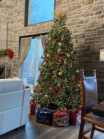 Gather around the beautiful wood burning fireplace while listening to your favorite vinyl records (byo) or stream your music on the smart tv or just snuggle to watch a movie after a long day of hiking or skiing at Wisp Ski Resort just 30-40 minutes away.